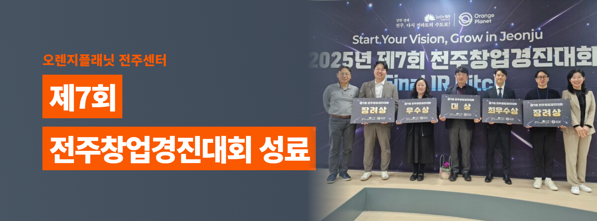 전주창업경진대회가 성공적으로 마무리됐습니다. 전주창업경진대회는 오렌지플래닛 전주센터와 전주시가 지역 유망 기업을 선발하기 위해 정기적으로 개최하는 행사로 올해 7회째 맞이했습니다. 최종 선발된 5팀은 IR 부트캠프 프로그램을 통해 투자사/평가자에게 IR 덱을 매력적으로 설명할 방법을 집중적으로 배웠습니다. 지난 10월 진행된 결선 행사에선 DNA 스크리닝 기반 농업용 신약 및 친환경 대체재 개발의 ‘오브제바이오’가 대상을 차지했습니다. 오브제바이오를 포함한 5개 팀은 오렌지팜 프로그램 지원 받을 예정입니다.